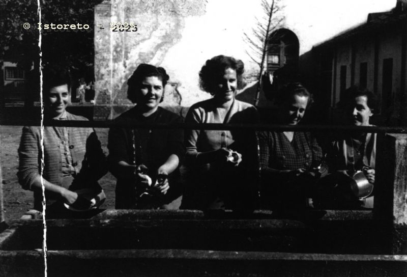 Donne istriane e fiumane al lavatoio nel campo, Caserma Perrone, Novara, 1953 c.a.