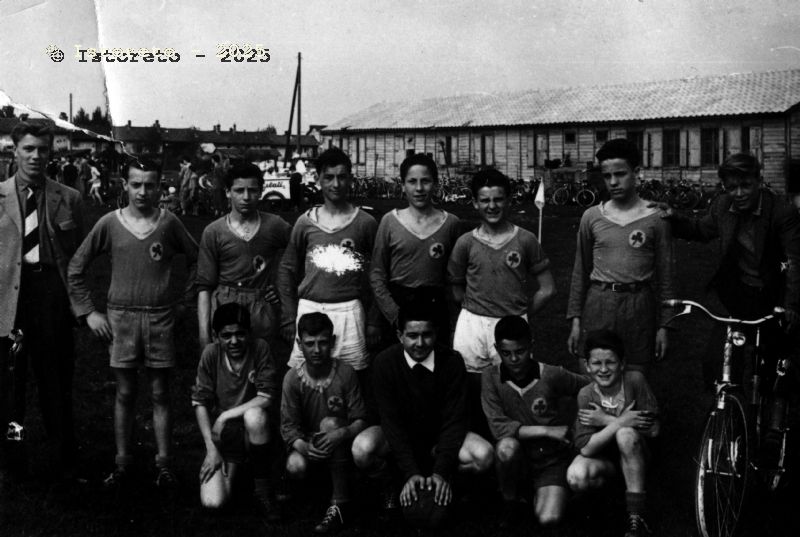 La Società Sportiva Olimpia nel campo di calcio della Caserma Perrone, Novara, 1949