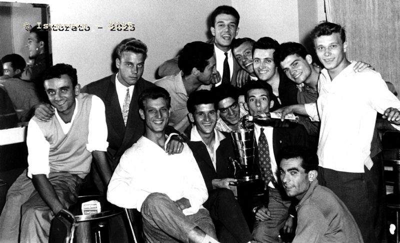 La Polisportiva Giuliana festeggia al Bar Dora la vittoria della Coppa ENAL, Novara, 1956