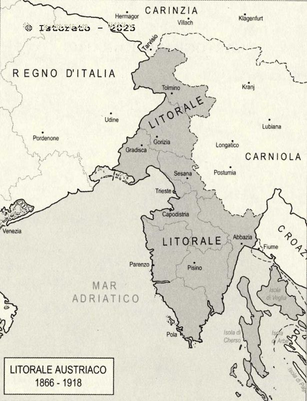 Nel 1920 con la firma del Trattato di Rapallo, entrato formalmente in vigore nell'inverno dell'anno successivo, Jugoslavia e Italia cercano di porre rimedio a una situazione che presenta dinamiche geografiche e politiche piuttosto complesse: insieme all'Istria e a Zara, sono annesse al Regno d'Italia anche le isole di Cherso, Lussino, Lagosta e Pelagosa in Dalmazia, dove l'Italia rinuncia ad ulteriori pretese territoriali. Il trattato di Rapallo prevede inoltre la possibilità per gli italiani della Dalmazia di optare per la cittadinanza italiana, fornendo quindi loro un' opportunità che garantisce una tutela superiore a quella accordata alle altre minoranze europee. Fiume è invece dichiarata città libera, status che la città del Quarnero mantiene fino al 27 gennaio 1924, quando gli accordi italo-jugoslavi di Roma, ne decretano il definitivo passaggio all'Italia. Tra il 1920 e il 1924 l'asse della frontiera orientale conosce dunque una nuova sistemazione: circa 400.000 sloveni e più di 100.000 croati entrano ufficialmente a far parte del Regno d'Italia, trasformando l'area giuliana e istriana in un territorio a popolamento misto, la cui situazione conosce un deciso mutamento durante gli anni della dittatura fascista, che attraverso una linea politica di italianizzazione spinta, intacca equilibri già fragili e modifica il quadro delle prospettive agendo a favore della componente italiana e a scapito di quella slava.